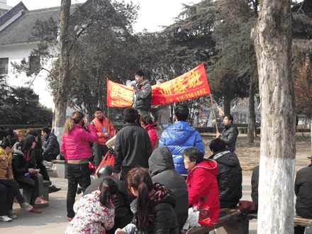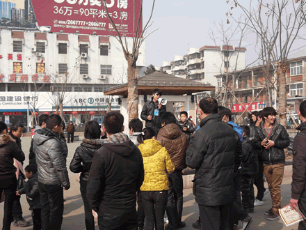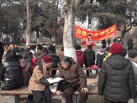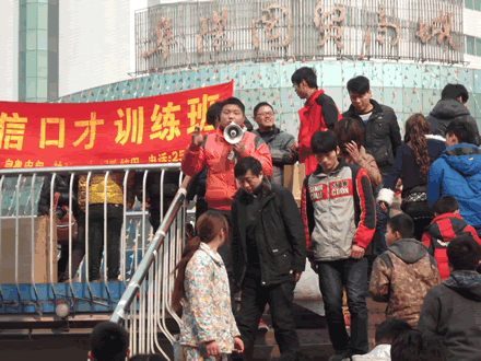 在公园即兴演讲,为了更好的锻炼心理素质,这位同学站到了高台上