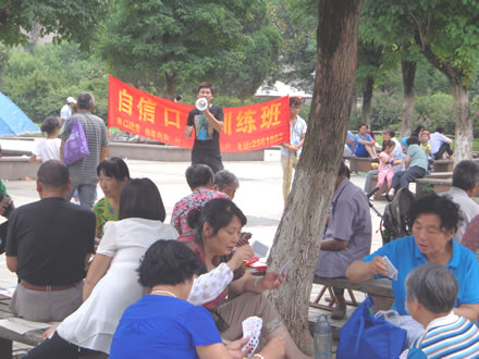 2014年暑假班学员公园演讲,面对围观人群毫不畏惧,侃侃而谈.