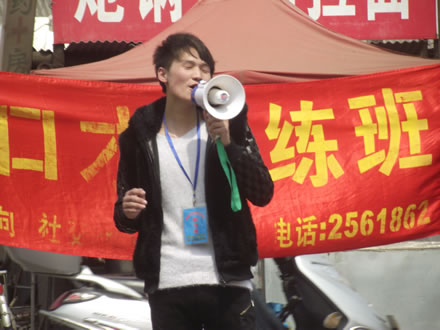 在大学门口演讲